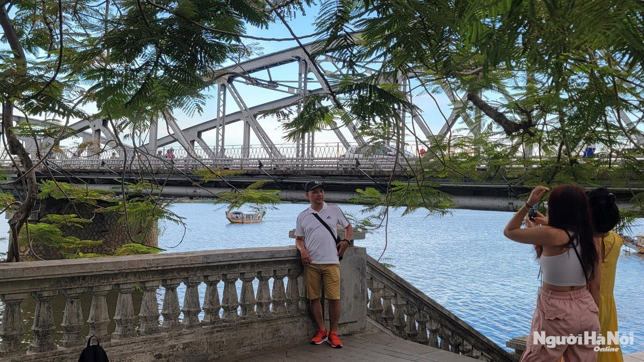 Cây phượng bên cạnh cầu Trường Tiền (TP Huế) không chỉ tô thêm vẻ đẹp cho Cố đô Huế mà còn được xem là địa chỉ níu chân du khách bởi thu hút nhiều người đến vui chơi, chụ...
